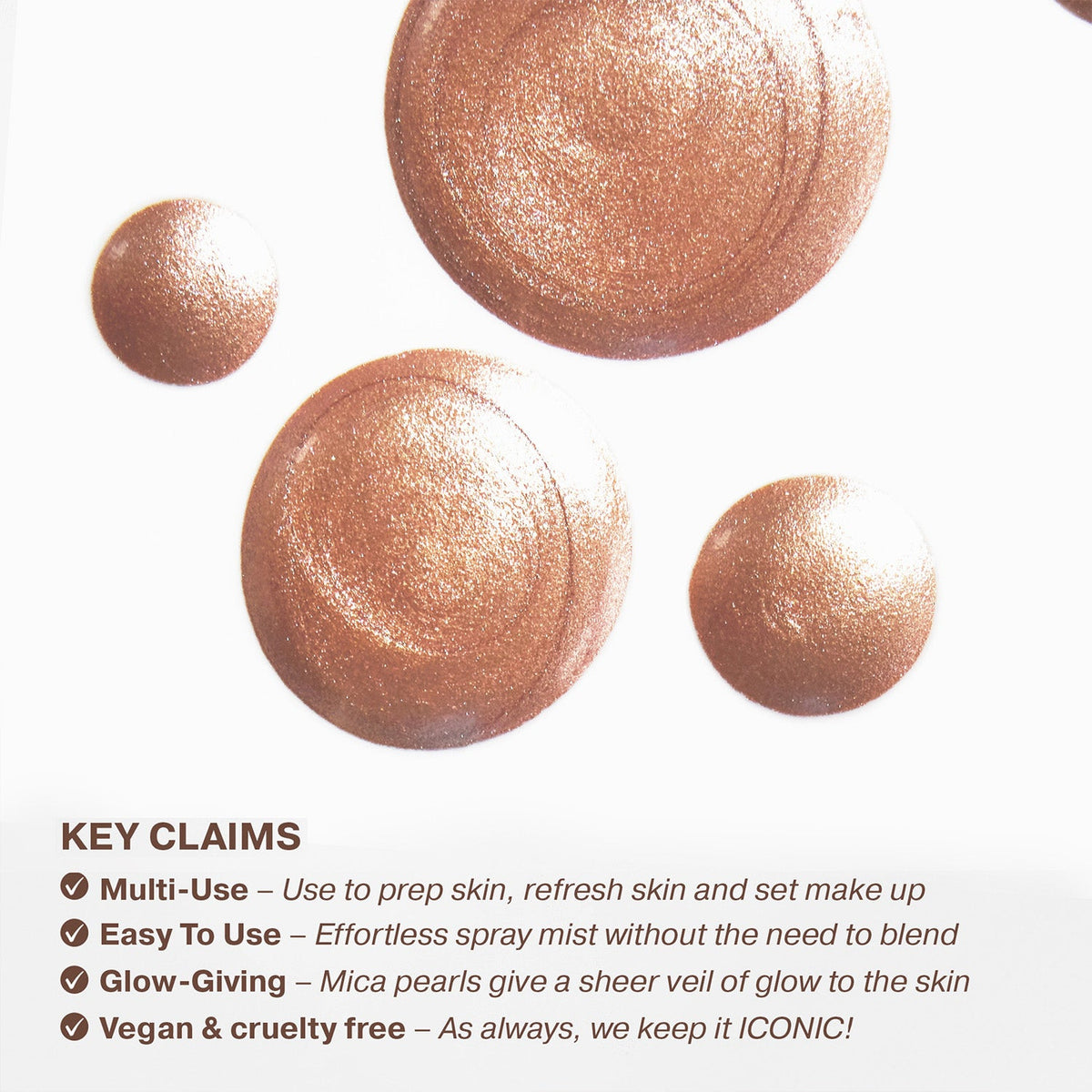 - Set: Give your Prep-Set-Glow a vigorous 5-second shake to mix the light-reflecting pigments. Hold the bottle 12 inches away and mist it over your face in sweeping motions—use it before makeup to hydrate, or after to lock in your look with a luminous, dewy finish.